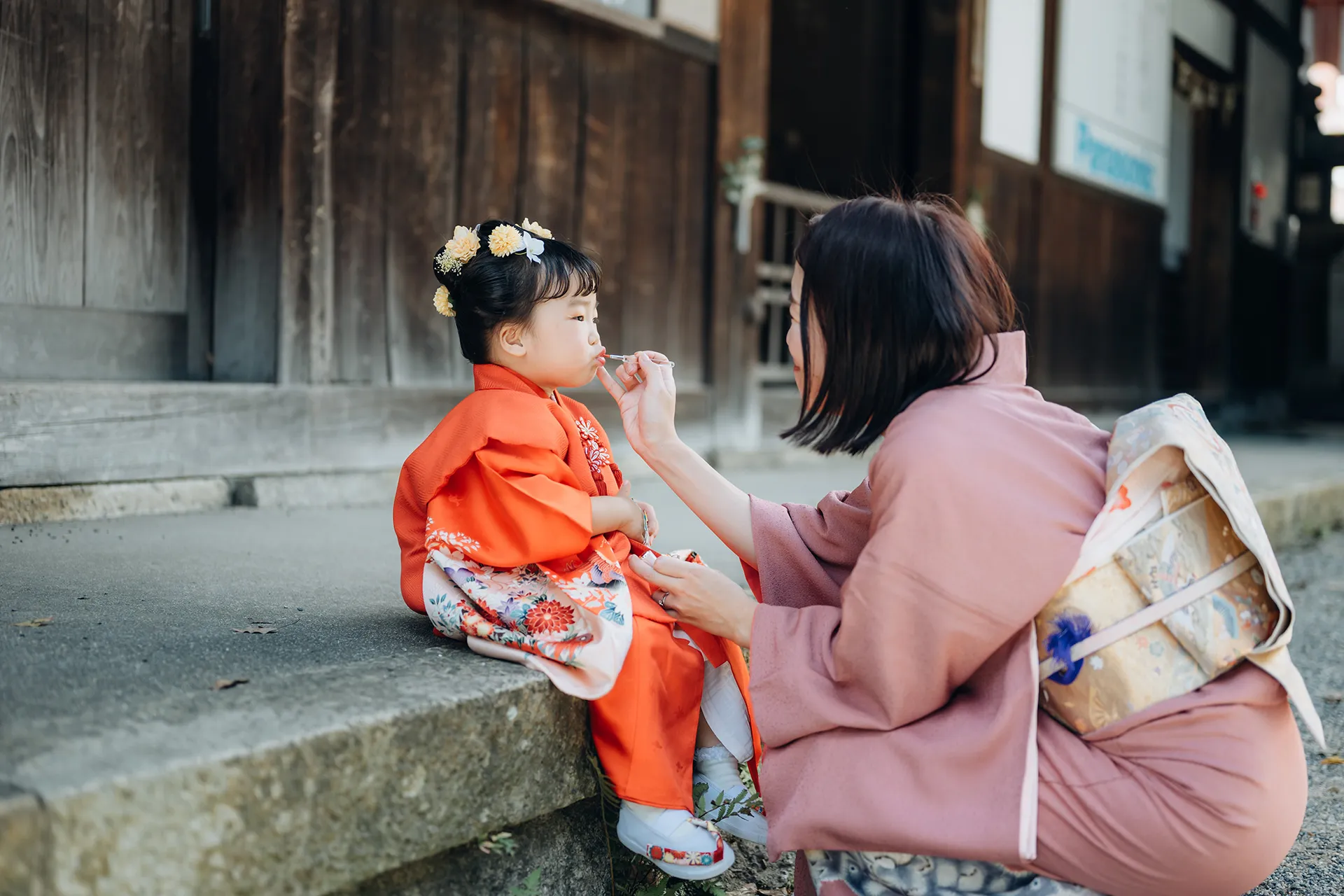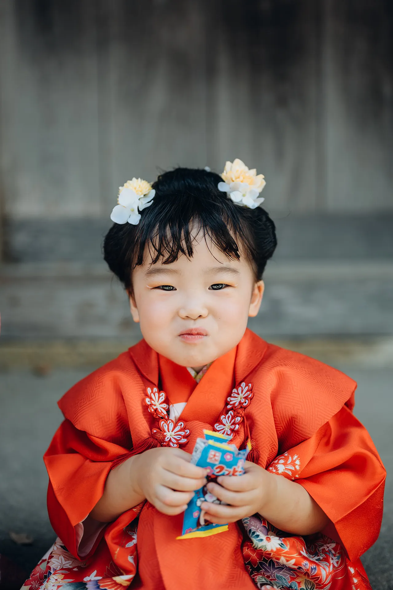 可愛い3歳の女の子の七五三。